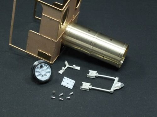 Oナロー16.5mmの話題です。 間もなく再生産の「コッペル5トンボトムタンクキット」の内容変更点の紹介です。ご覧のパーツが前回から変わりました。 (今回変更したパーツ。キャブと動輪のタイヤは変更ありません) ボイラーはウェイト兼用の快削真鍮挽物に…