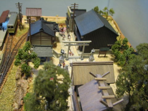 なんて、私のではなくて、大阪のAさんが製作されたレイアウトです。こちらで本邦初公開!のお許しをいただきました。『秋祭りの神社をメインに日本の昔の風景』を再現されています。